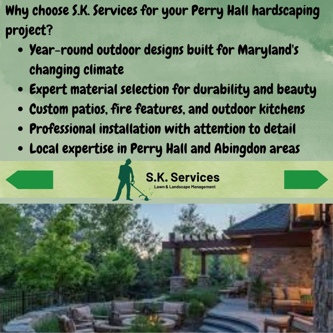 S.K. Services is ready to help homeowners in Perry Hall, MD, bring their multi-season outdoor vision to life. Contact the team at (443) 272-4151 to discuss your hardscaping project and explore modern outdoor designs tailored to your home.